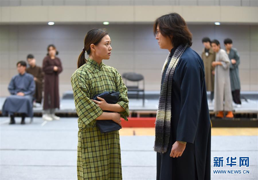 12月26日,在話劇《二月》中飾演文嫂的演員黃薇(左)和飾演蕭澗秋的演員王瑋在排練。 新華社記者 羅曉光 攝