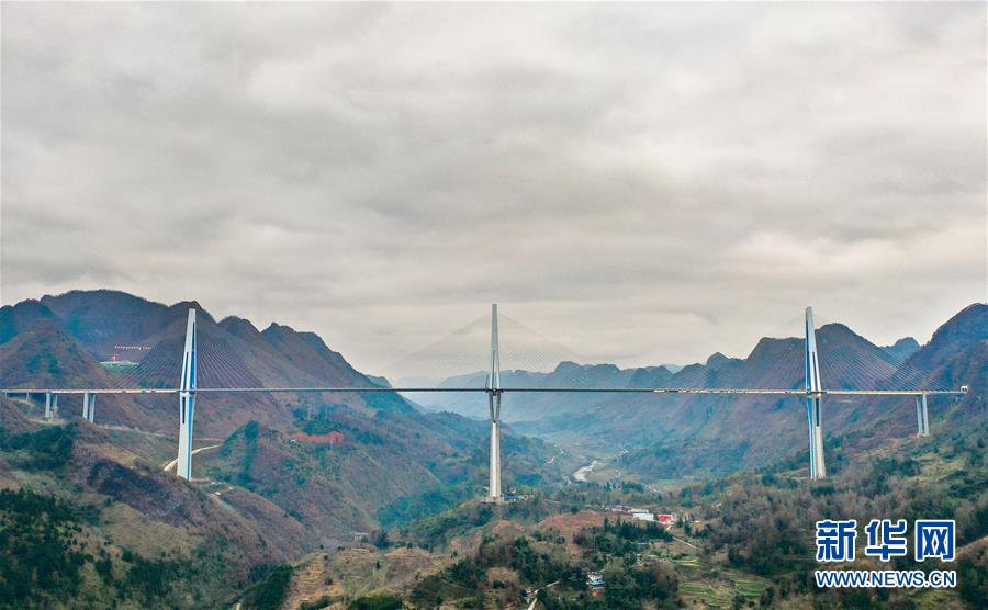 這是12月29日拍攝的貴州平塘特大橋(無人機(jī)照片)。目前,貴州平塘至羅甸高速公路控制性工程平塘特大橋已經(jīng)通過驗(yàn)收,將于近日全橋通車。平塘特大橋全長2135米,橋面寬30.2米,規(guī)劃雙向4車道,是一座三塔雙索面疊合梁斜拉橋。三座橋塔的高度分別為320米、332米和298米,相當(dāng)于在峽谷之中建了三座100多層高的大樓。新華社記者劉續(xù)攝
