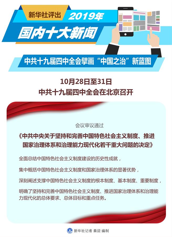 圖表:新華社評出2019年國內(nèi)十大新聞 新華社記者 秦迎 編制