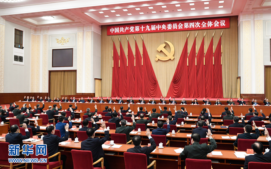 10月28日至31日,中共十九屆四中全會在北京召開。會議審議通過《中共中央關于堅持和完善中國特色社會主義制度、推進國家治理體系和治理能力現(xiàn)代化若干重大問題的決定》,全面總結中國特色社會主義制度建設的歷史性成就,集中概括中國特色社會主義制度和國家治理體系的顯著優(yōu)勢,深刻闡述支撐中國特色社會主義制度的根本制度、基本制度、重要制度,明確了堅持和完善中國特色社會主義制度、推進國家治理體系和治理能力現(xiàn)代化的總體要求、總體目標和重點任務。