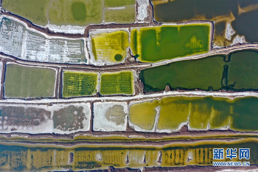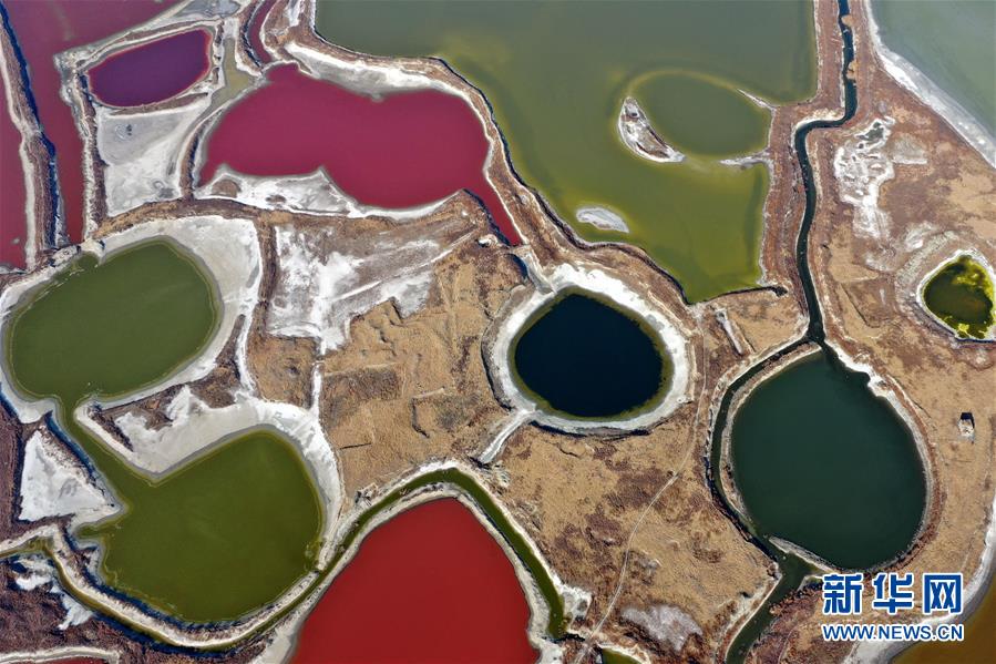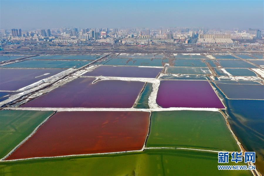 12月27日無人機(jī)拍攝的山西運城鹽湖。 冬日時節(jié),從空中俯瞰位于山西省運城市的鹽湖,景色如畫。 新華社記者曹陽攝