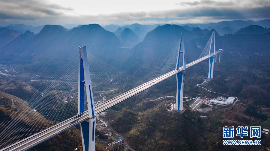 這是貴州公路開發(fā)公司承建的平羅高速平塘特大橋(無人機照片,2019年12月29日攝)。新華社記者陶亮攝