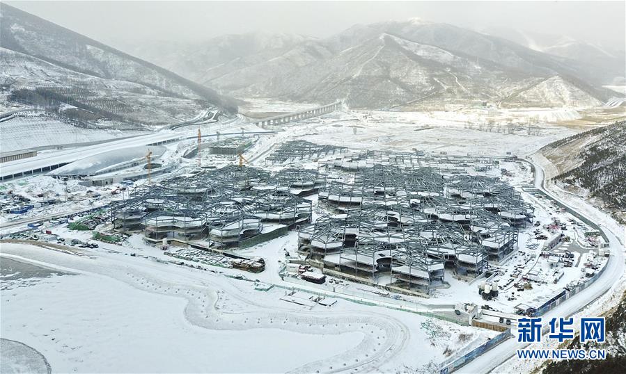 圖為京張高鐵太子城站(左)和崇禮太子城小鎮(zhèn)(無(wú)人機(jī)拍攝,攝于12月10日)。新華社記者楊世堯攝