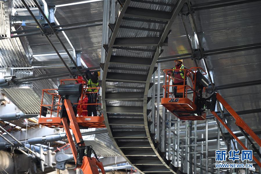 12月31日,施工人員在國(guó)家速滑館施工現(xiàn)場(chǎng)安裝最后一塊屋面單元板塊。新華社記者鞠煥宗攝