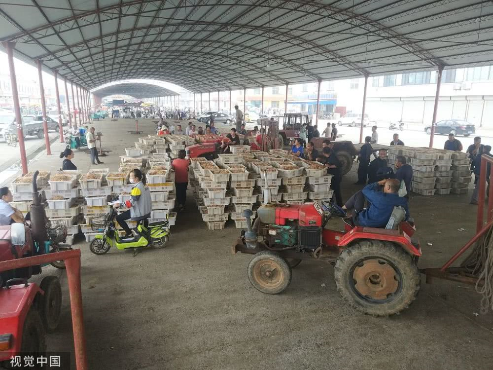 2019年9月13日,農歷八月十五中秋節(jié),山東濱州沾化區(qū)魯北海產品批發(fā)市場,村民正在分揀貨物。