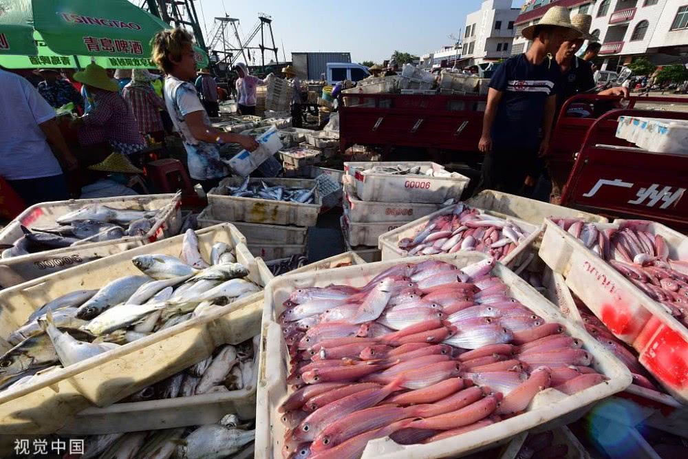 這是2019年9月22日,大批鮮活魚蝦貝類等珍稀海產品源源運抵海南文昌清瀾港碼頭卸貨,引來大批客商到場選購。