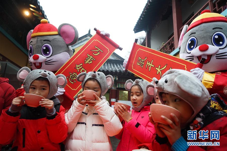 1月2日,小朋友在南京玄奘寺的贈(zèng)粥送祝?;顒?dòng)現(xiàn)場(chǎng)喝臘八粥。 當(dāng)日是農(nóng)歷臘月初八,中國傳統(tǒng)臘八節(jié)。 新華社記者 季春鵬 攝