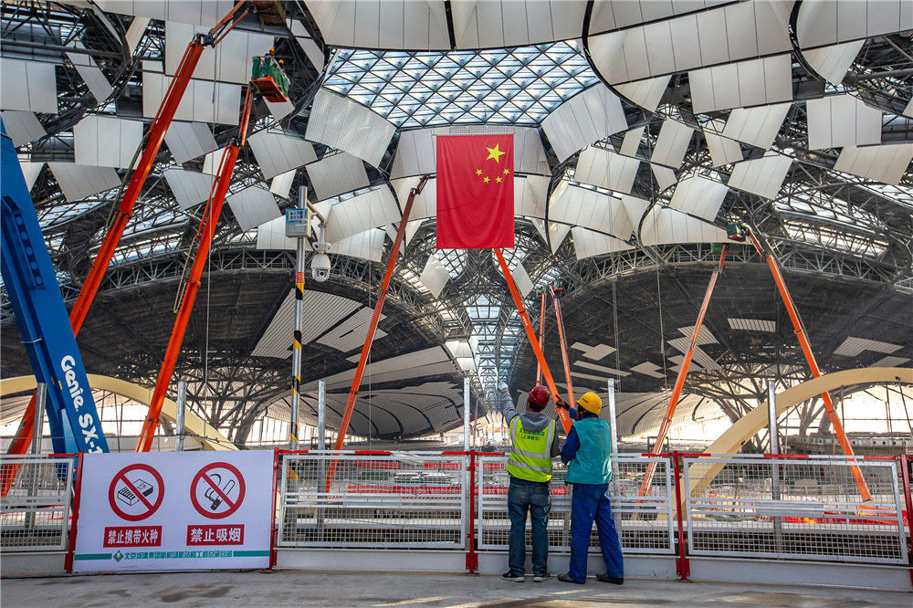 2018年10月30日,北京,大興新機場的建設者。周錦/視覺中國