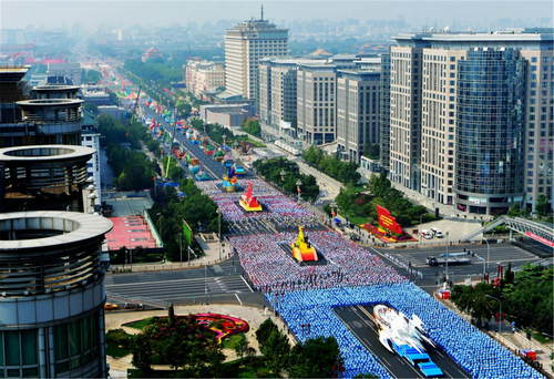 2019年10月1日,慶祝中華人民共和國成立70周年大會在北京天安門廣場隆重舉行。這是行進中的群眾游行方陣。新華社記者魏培全攝