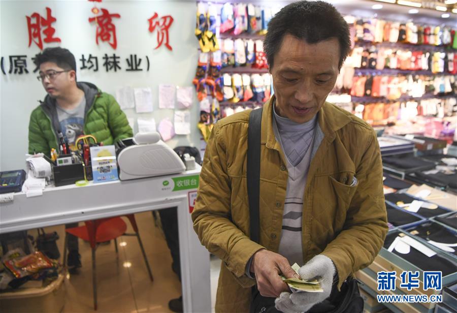 完成一筆搬運業(yè)務(wù)后,冉光輝清點自己的勞務(wù)費(1月5日攝)。新華社記者王全超攝