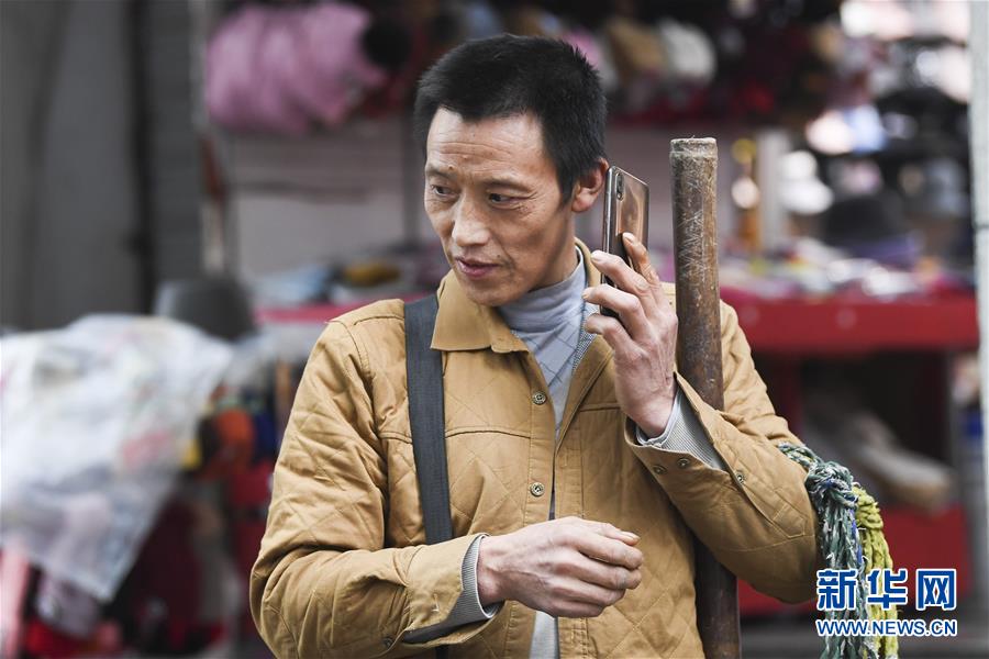 冉光輝接到一項搬運業(yè)務(wù)的電話(1月5日攝)。新華社記者王全超攝