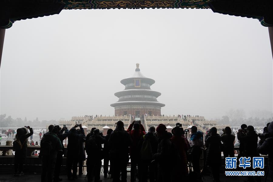 12月16日,人們在天壇公園觀賞雪景。當日,北京迎來降雪天氣。新華社記者鞠煥宗攝