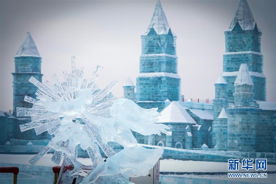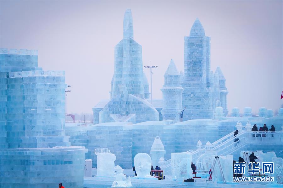 冰雕師在哈爾濱冰雪大世界內(nèi)雕刻出主題各異的冰雕作品(1月8日攝)。新華社記者王松攝