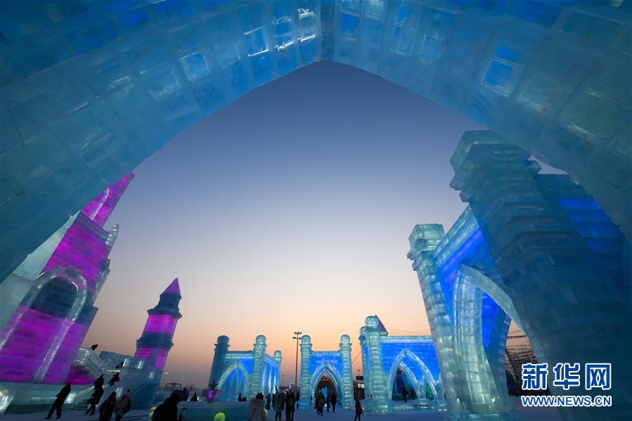 這是哈爾濱冰雪大世界園區(qū)中的景觀(1月5日攝)。每到冬季,天氣寒冷的冰城哈爾濱陸續(xù)迎來各類冰雕雪雕賽事。從2019年12月7日起,采冰工人們?nèi)找共杀\(yùn)冰、冰景雪雕藝術(shù)家精心雕琢,這些“冰雪造夢(mèng)者”們?cè)趪?yán)寒天氣中辛苦付出,讓一座“冰雪之城”在松花江畔拔地而起,向來自世界各地的游客展現(xiàn)浪漫絢麗的冰雪奇觀。新華社記者王松攝