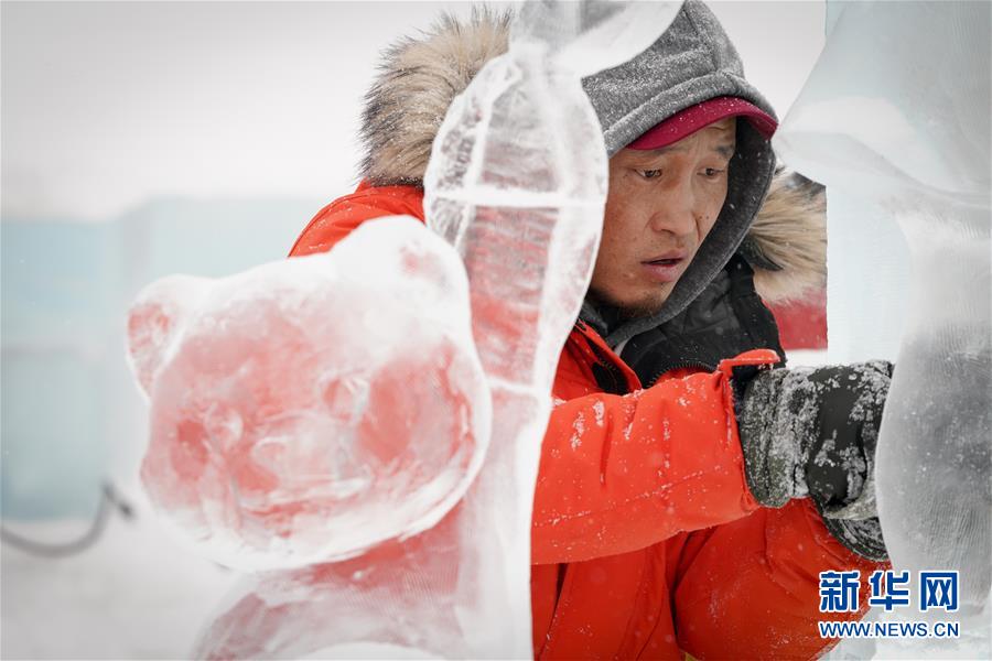 1月7日,參賽者在進(jìn)行冰雕創(chuàng)作。新華社記者王松攝