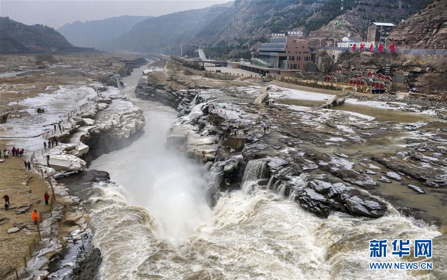 12月14日,游人在壺口瀑布景區(qū)游玩(無人機(jī)拍攝)。位于秦晉大峽谷的黃河壺口瀑布,冬日水量較夏日雖然有所減少,但驚天動地的濤聲依舊,周圍石壁上的冰掛與河中的浪濤構(gòu)成一幅獨(dú)特的北國風(fēng)光圖,吸引游客前來觀賞。新華社記者陶明攝