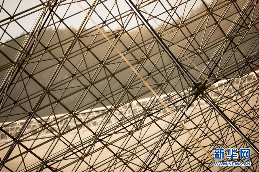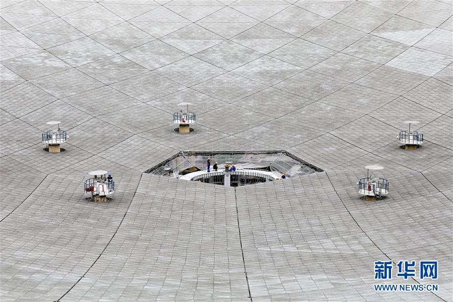 1月9日拍攝的“中國(guó)天眼”反射面板(檢修期間拍攝)。新華社記者劉續(xù)攝