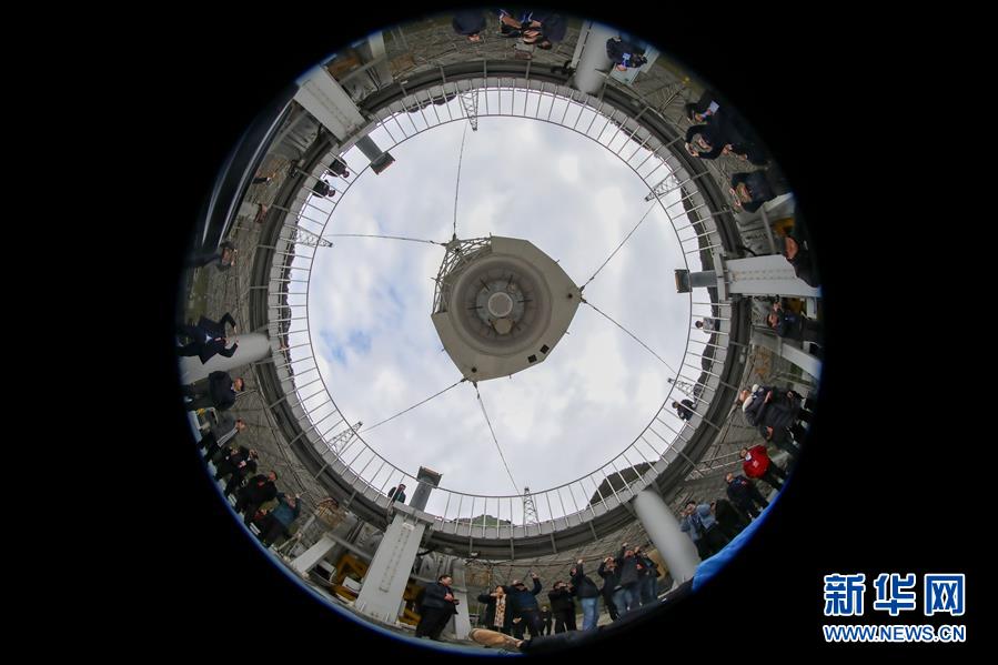 1月11日,專家學(xué)者對(duì)“中國(guó)天眼”進(jìn)行考察(檢修期間拍攝)。新華社記者劉續(xù)攝