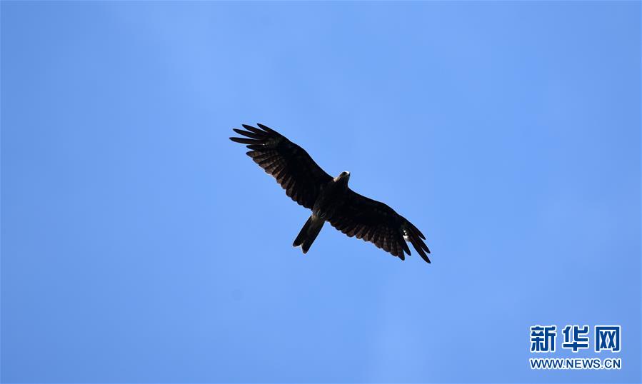 這是陳志高在保護(hù)區(qū)內(nèi)拍攝的黑鳶(2018年6月26日攝)。新華社發(fā)(陳志高攝)