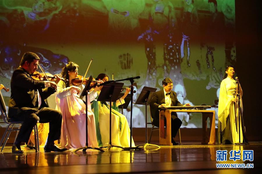 1月11日,在美國(guó)休斯敦舉辦的“擁抱春天”晚會(huì)上,藝術(shù)家演奏大唐樂(lè)舞《清平樂(lè)》。新華社記者 劉立偉 攝