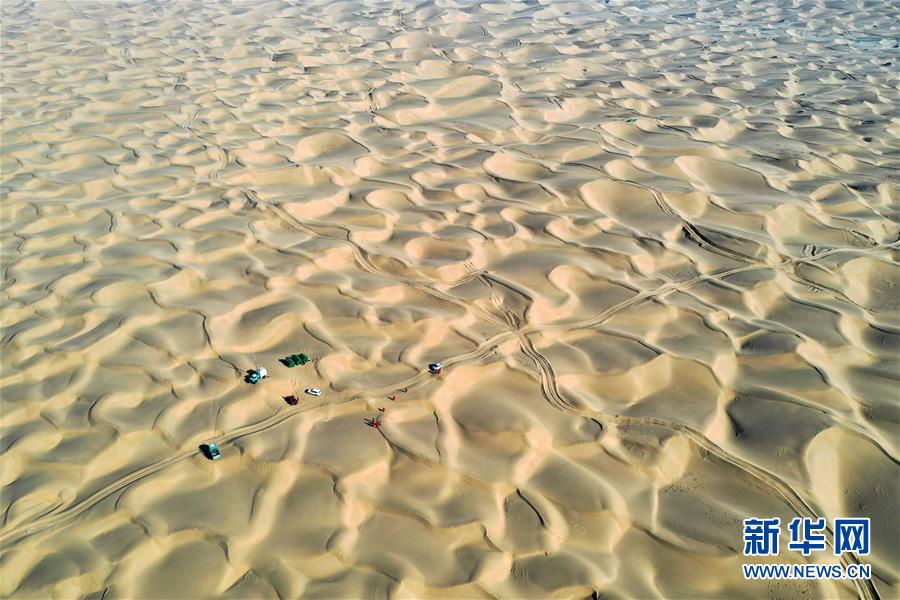 這是1月11日拍攝的塔克拉瑪干中心地震采集儀器車停車點(無人機照片)。地球物理勘探是油氣開發(fā)的第一步,相當于給地球做CT。物探工人按照嚴格的測線部署,在相應(yīng)位置鉆井,然后實施地震,采集地震波數(shù)據(jù)??蒲腥藛T通過數(shù)據(jù)組成的“CT片”,就能夠清晰地“看”到地下的地質(zhì)結(jié)構(gòu),判斷哪里埋藏有石油或者天然氣。2019年10月,東方地球物理勘探有限責(zé)任公司塔里木物探處2113隊進入新疆塔克拉瑪干沙漠腹地,開始中古14-21、塔中2兩個區(qū)塊的三維地震勘探。近2000名物探工人將在1000平方公里的范圍內(nèi)一直工作到2020年4月,這也意味著他們將在塔克拉瑪干沙漠腹地連續(xù)度過第14個除夕夜。蘊藏著豐富石油天然氣資源的新疆塔克拉瑪干沙漠有“死亡之?!敝Q,氣候干燥,年降水量在50毫米以下,冬季地表最低溫度超過零下30攝氏度,是世界油氣勘探難度最大的地區(qū)之一。為避開風(fēng)季,物探工人每年9、10月份進入沙漠,一直工作到來年4月,夜以繼日與黃沙、嚴寒為伴,用辛勤的汗水,為祖國找油找氣。新華社記者丁磊攝