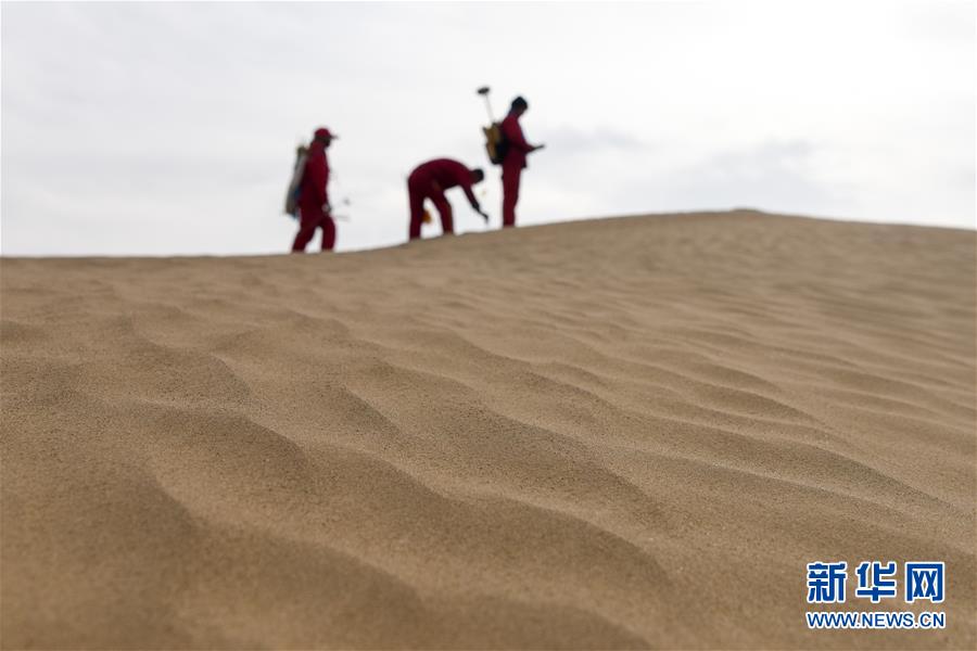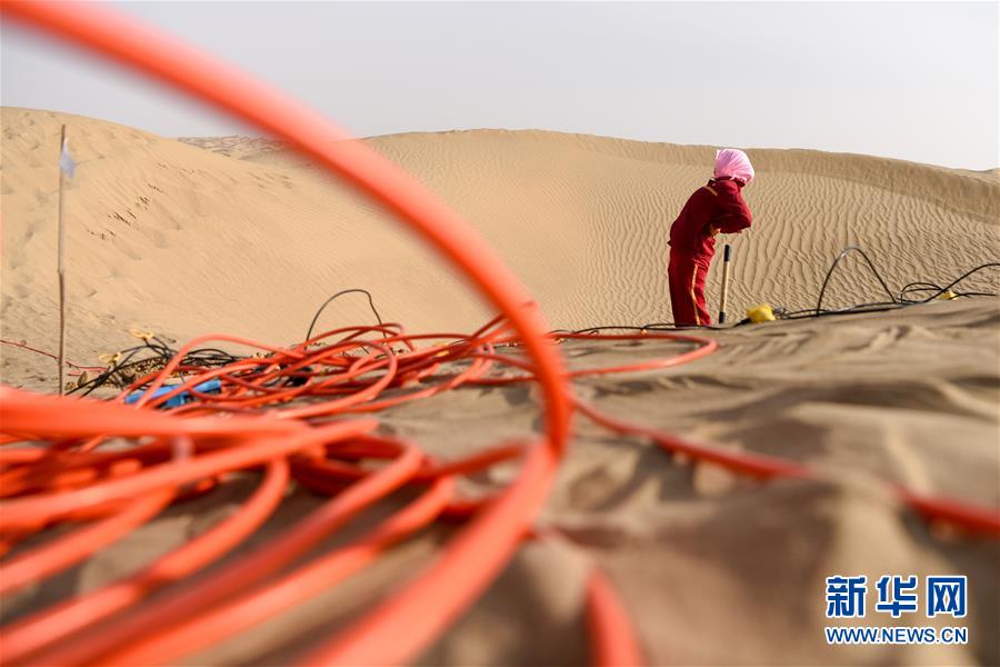 1月13日,測(cè)量工在測(cè)線上布設(shè)炮點(diǎn)樁號(hào)。地球物理勘探是油氣開(kāi)發(fā)的第一步,相當(dāng)于給地球做CT。物探工人按照嚴(yán)格的測(cè)線部署,在相應(yīng)位置鉆井,然后實(shí)施地震,采集地震波數(shù)據(jù)??蒲腥藛T通過(guò)數(shù)據(jù)組成的“CT片”,就能夠清晰地“看”到地下的地質(zhì)結(jié)構(gòu),判斷哪里埋藏有石油或者天然氣。2019年10月,東方地球物理勘探有限責(zé)任公司塔里木物探處2113隊(duì)進(jìn)入新疆塔克拉瑪干沙漠腹地,開(kāi)始中古14-21、塔中2兩個(gè)區(qū)塊的三維地震勘探。近2000名物探工人將在1000平方公里的范圍內(nèi)一直工作到2020年4月,這也意味著他們將在塔克拉瑪干沙漠腹地連續(xù)度過(guò)第14個(gè)除夕夜。蘊(yùn)藏著豐富石油天然氣資源的新疆塔克拉瑪干沙漠有“死亡之?!敝Q,氣候干燥,年降水量在50毫米以下,冬季地表最低溫度超過(guò)零下30攝氏度,是世界油氣勘探難度最大的地區(qū)之一。為避開(kāi)風(fēng)季,物探工人每年9、10月份進(jìn)入沙漠,一直工作到來(lái)年4月,夜以繼日與黃沙、嚴(yán)寒為伴,用辛勤的汗水,為祖國(guó)找油找氣。新華社記者丁磊攝