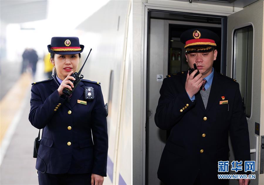 拼版照片左圖:在臨汾西站,列車長(zhǎng)陳海燕通過(guò)對(duì)講機(jī)了解各個(gè)車廂的上車情況(新華社記者詹彥1月11日攝);右圖:在太原開(kāi)往青島北的K884次列車上,列車長(zhǎng)趙耀通過(guò)對(duì)講機(jī)了解各個(gè)車廂的情況(新華社記者楊晨光1月11日攝)。