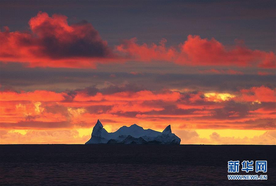 南大洋上的午夜冰山(2019年12月28日攝)。新華社記者劉詩(shī)平攝