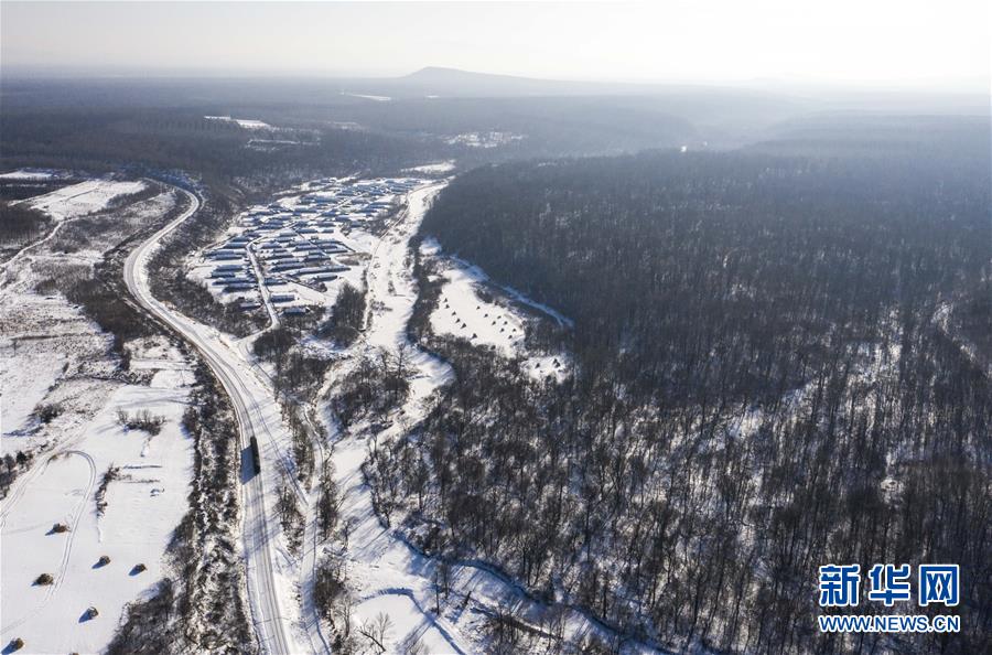 “送水小火車”行駛在林海間,前往送水地點(1月17日攝,無人機照片)。新華社記者許暢攝