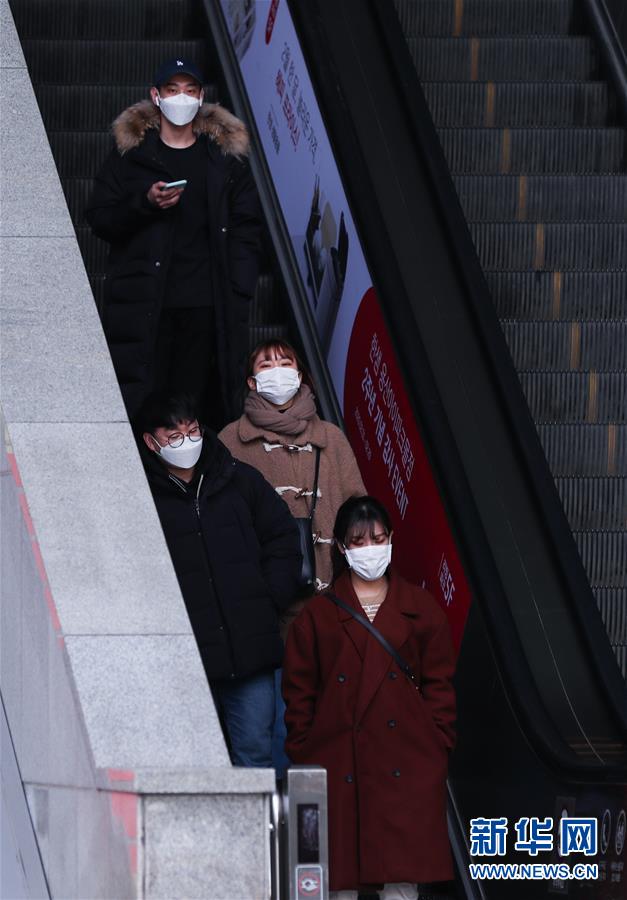 2月24日,在韓國首爾,當(dāng)?shù)鼐用癯俗詣?dòng)扶梯。 新華社記者 王婧嬙 攝