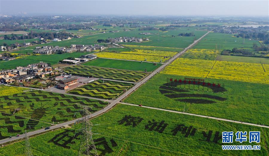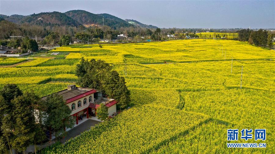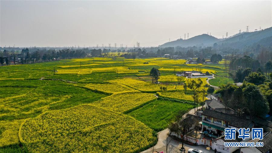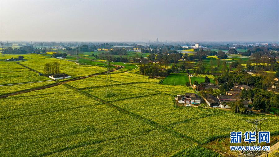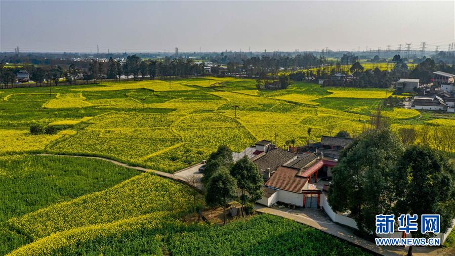 2月25日在四川省崇州市拍攝的油菜花田(無人機照片)。新華社記者王曦攝
