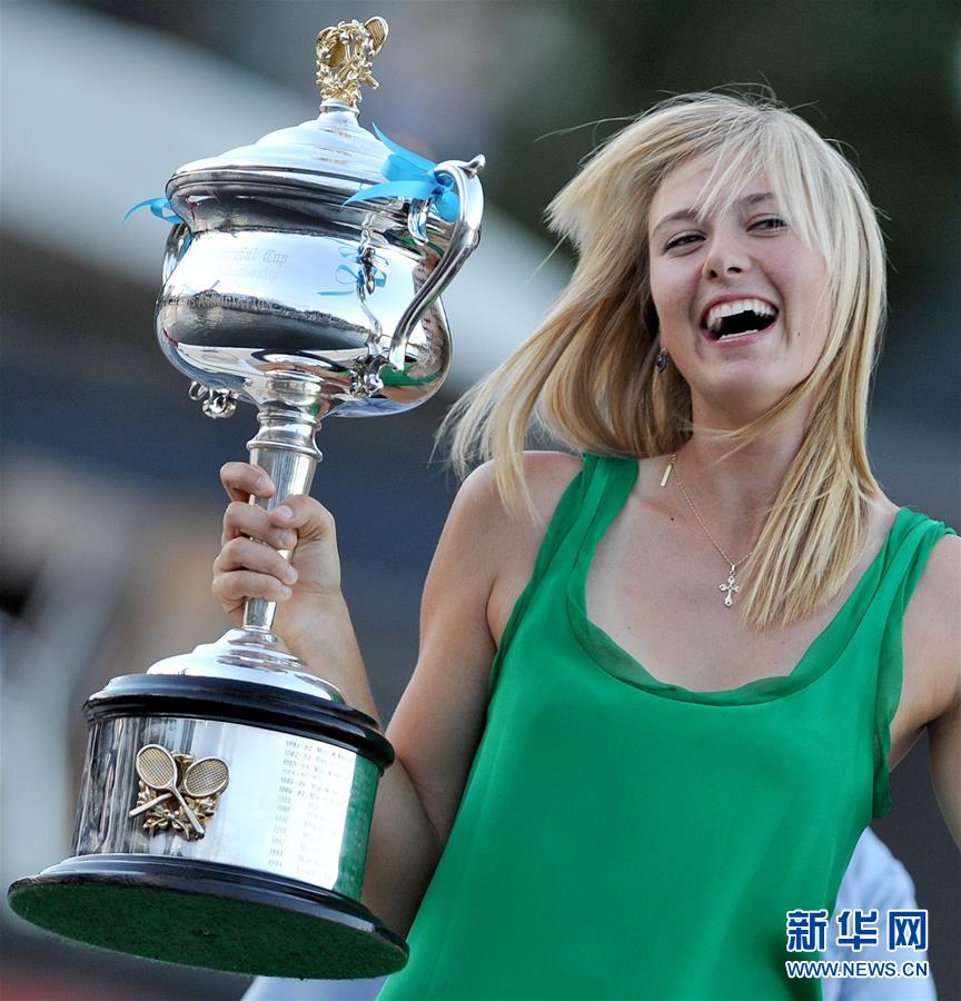 圖為2008年1月26日,莎拉波娃在獲得澳網(wǎng)女單冠軍后,來到墨爾本市的亞拉河畔接受拍照。 新華社記者呂小煒攝