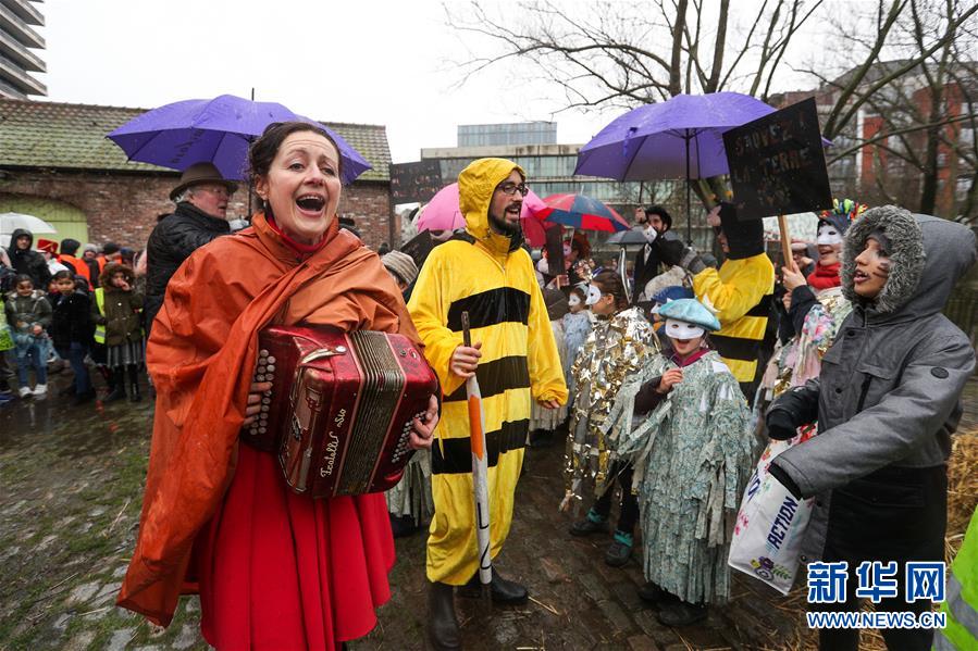 2月27日,人們在比利時布魯塞爾參加狂歡節(jié)活動。 新華社記者鄭煥松攝