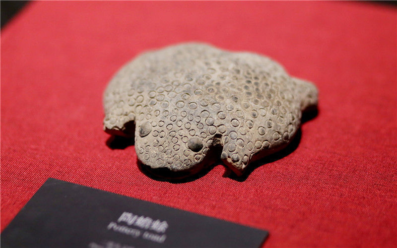 2019年10月19日,河南洛陽,二里頭夏都遺址博物館。形象生動的陶蟾蜍。