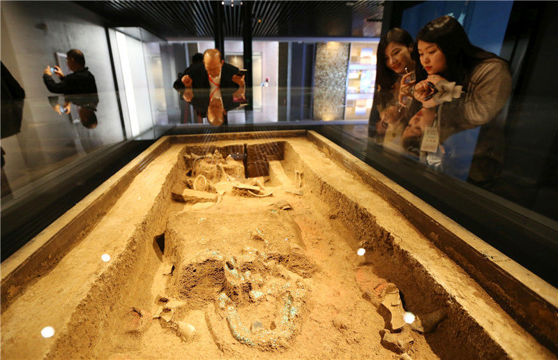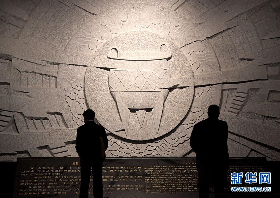 參觀者在二里頭夏都遺址博物館參觀(2019年10月19日攝)。新華社記者李安攝