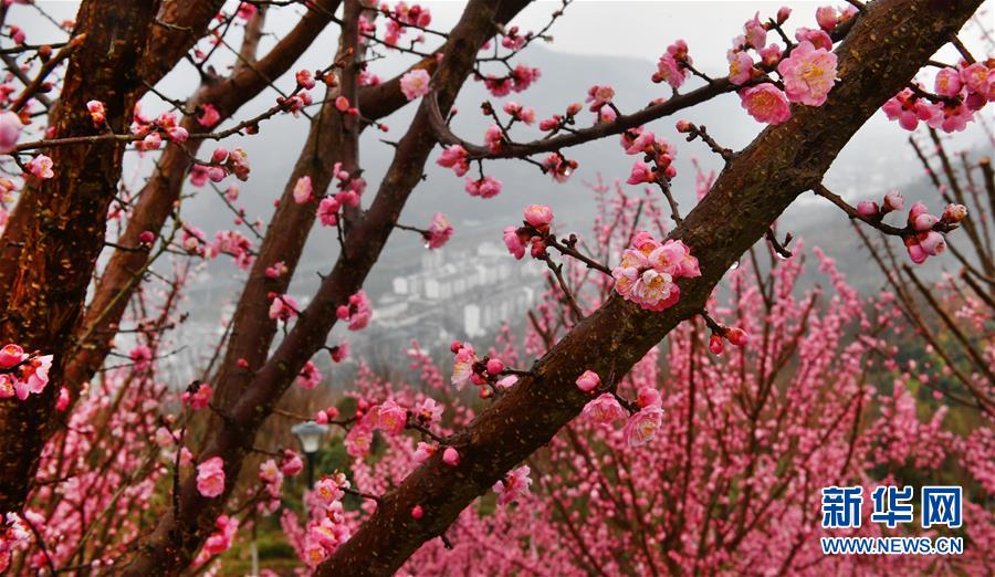 3月2日拍攝的平利縣長安鎮(zhèn)洪福茶山盛開的春梅。新華社記者陶明攝