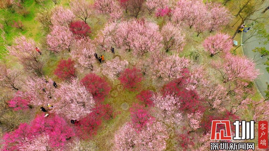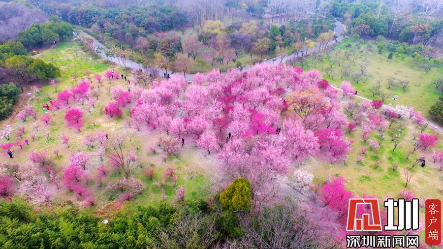 2020年2月26日,春暖花開,春意盎然,江蘇省揚州市蜀岡西峰生態(tài)公園內(nèi)梅花競相綻放,五顏六色的梅花樹為古城大地披上七彩春裝,美不勝收,吸引了市民和游客前來踏春賞景。