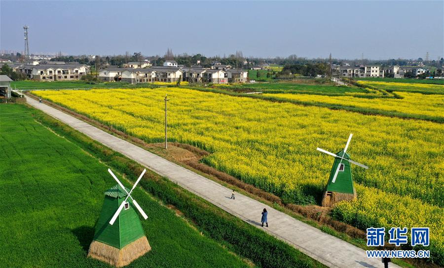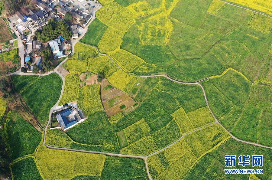 2月24日在四川省大邑縣安仁鎮(zhèn)永興村拍攝的油菜花田(無人機照片)。新華社記者王曦攝