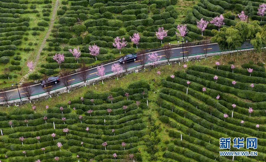 3月2日,車輛行駛在平利縣長安鎮(zhèn)洪福茶山道路上(無人機(jī)照片)。新華社記者陶明攝