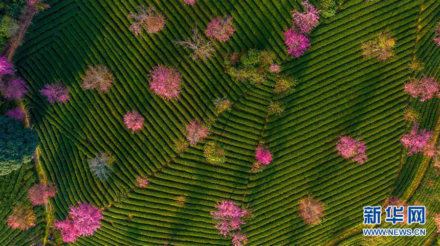 這是云南南澗彝族自治縣無量山櫻花谷一景(12月11日無人機拍攝)。新華社記者胡超攝