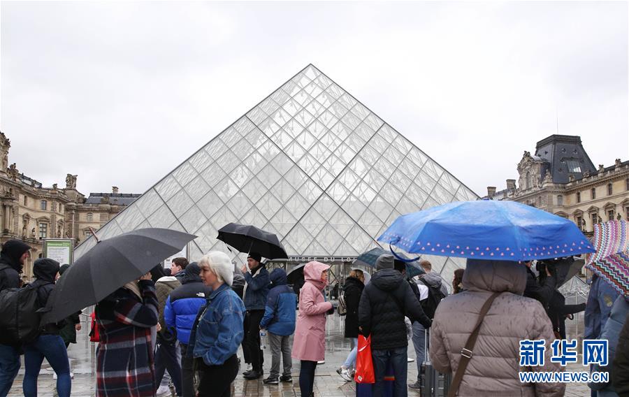 3月2日,在法國巴黎,人們在盧浮宮外了解開館信息。新華社記者 高靜 攝
