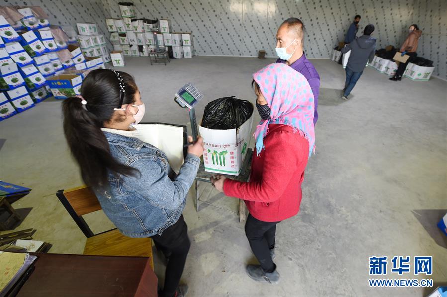 3月4日,在靖遠(yuǎn)縣北灣鎮(zhèn)新坪村農(nóng)貿(mào)市場(chǎng),收購商收購農(nóng)民采摘的黃瓜。新華社記者 范培珅 攝