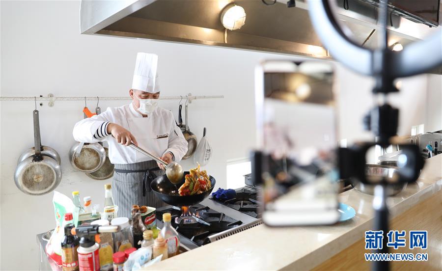 3月4日,職教城內(nèi)的鞍山市現(xiàn)代服務學校的李崇老師為學生進行遼菜烹飪實訓網(wǎng)絡授課。遼寧省鞍山市職教城內(nèi)的各類職業(yè)教育學校從3月2日恢復網(wǎng)絡授課以來,教師們設(shè)置了豐富多彩的課程,提高1萬余名學生線上學習的積極性。新華社記者 姚劍鋒攝