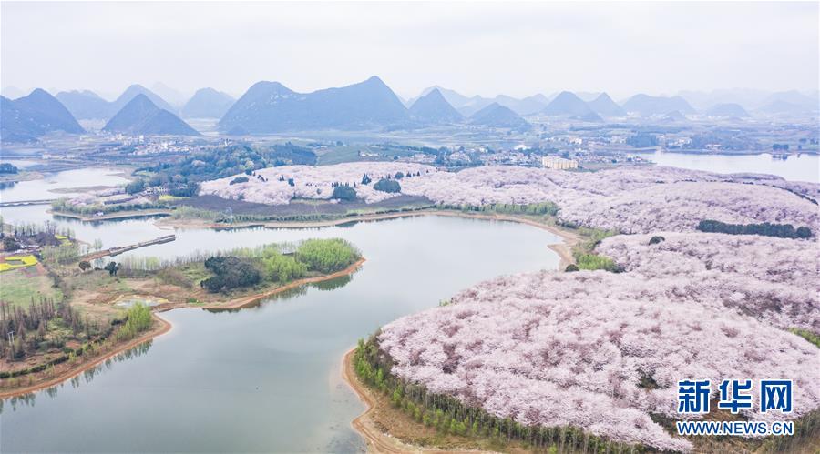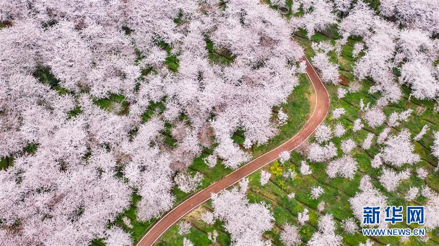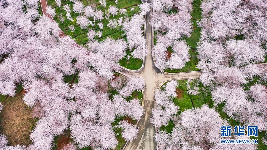 3月12日拍攝的貴安新區(qū)櫻花觀光園風(fēng)景(無(wú)人機(jī)照片)。 近日,貴州省貴安新區(qū)櫻花觀光園內(nèi)櫻花競(jìng)相盛開,花團(tuán)錦簇間春意盎然。據(jù)介紹,疫情防控期間,為避免人群聚集,櫻花園暫不接待游客。 新華社記者 陶亮 攝