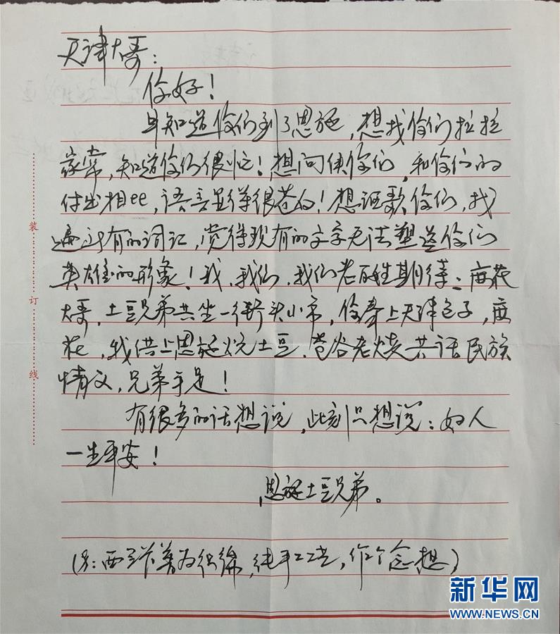 這是譚祖悅以“恩施土豆兄弟”的名義,為支援恩施的天津醫(yī)療隊(duì)寫的一封信(3月3日攝)。 新華社發(fā)