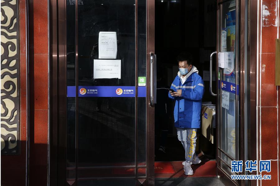 3月12日,李杰(右)在一個投遞點(diǎn)向傳達(dá)室工作人員詢問收件人的信息。新華社記者張玉薇攝