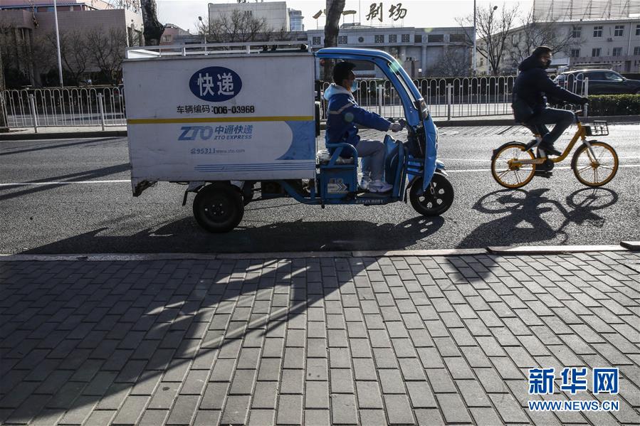 3月12日早晨,李杰在運(yùn)送快遞的路上。新華社記者張玉薇攝