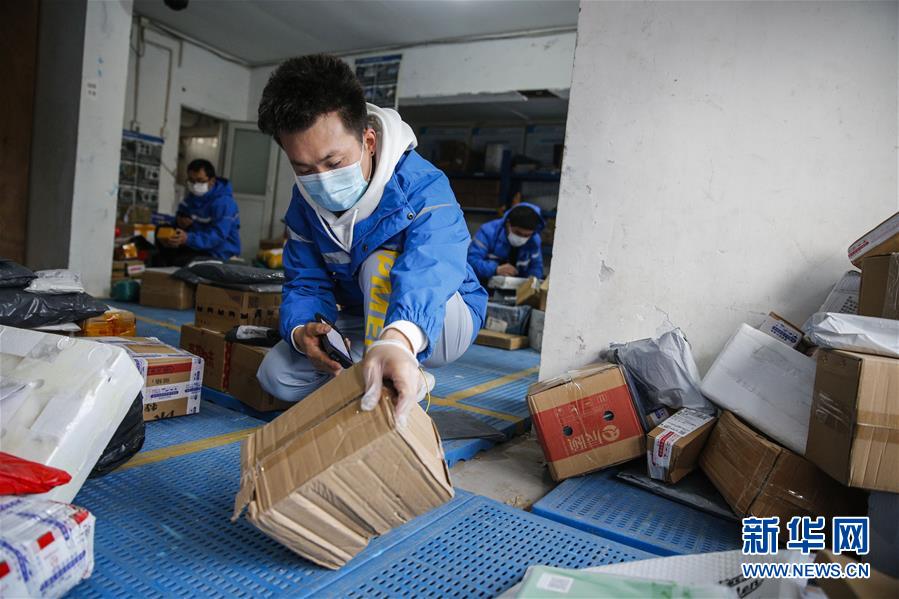 3月12日,李杰在中通快遞北京廠洼路網(wǎng)點分揀快遞包裹。新華社記者張玉薇攝
