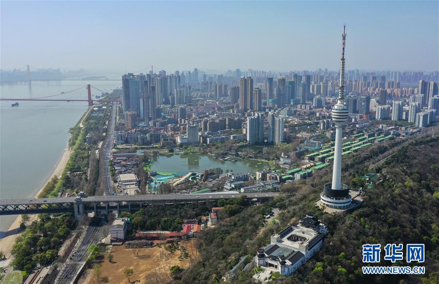 這是3月15日拍攝的武漢龜山電視塔(無人機照片)。 3月15日,江城武漢天氣晴好,整個城市沐浴在和煦的春光中。 新華社記者 李賀 攝
