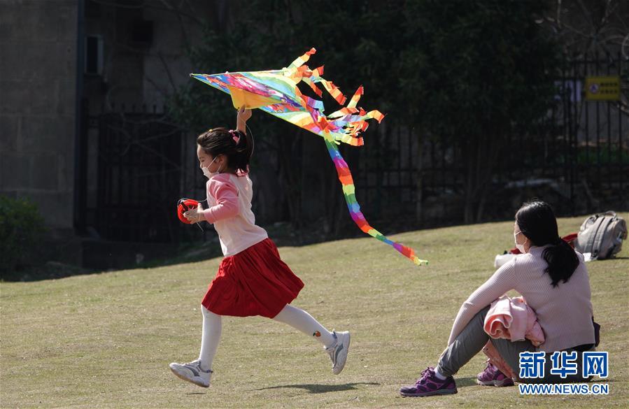 3月15日,一名小朋友在南京東郊體育公園放風箏。 當日,南京風和日麗,市民們來到東郊體育公園,踏青春游。 新華社記者 楊磊 攝